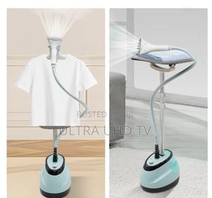 Standing garment steamer. It is designed to quickly remove wrinkles from clothes and fabrics using high-temperature steam.