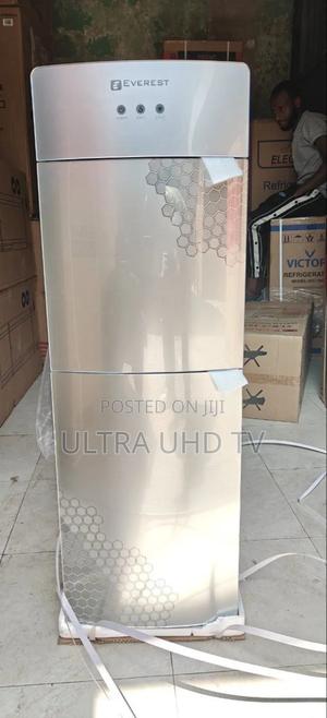 Everest brand water dispenser featuring a built-in refrigerator compartment.