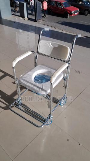 Standard commode wheelchair for elderly, post surgery patients and those with limited mobility. It is a manual wheelchair.
