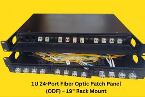 Organize and manage your fiber optic connections with this 1U 24-port patch panel, designed for standard 19-inch racks.