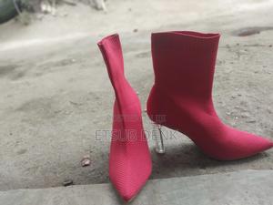 Only worn once, these vibrant red boots (Size 39, medium heel) are looking for a new home.