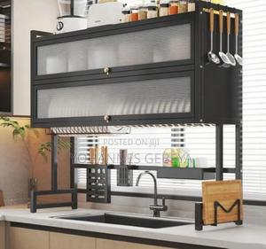 Upgraded and High Capacity Kitchen Over Sink Utensils Storage Rack የታጠቡ የወጥ ቤት ዕቃዎች ማድረቂያ ከማይዝግ ብረት የተሰራ በቀላሉ የሚገጣጠም ማንኛውም የዕቃ ማጠቢያ ሲንክ ላይ የሚገጠም 85cm ስፋት፤28cm ጥልቀት እና 90cm ቁመት ያለው ወፍራም አክሪሊክ በር ያለው