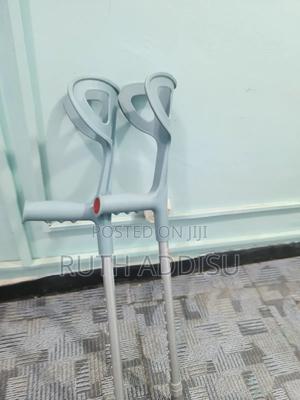 የብብት እና የክንድ ክራንች elbow Nd axillary crutches #axillary_crutches #elbow_crutches #almunium_crutchea #Free_and fast_delivery #stainless_crutches #crutches_in_Ethiopia #crutches_in_addis_ababa Axilla or underarm crutches: They should be positioned with 2-3 fingers of distance between the axilla and the axilla pad with the elbow flexed between 20-30 degrees.[1] The design includes an axilla bar, a handpiece and double uprights joined distally by a single leg. They are adjustable in height; both the overall height and handgrip height can be adjusted (adjustable approximately 48 to 60 inches / 122 to 153 cm).