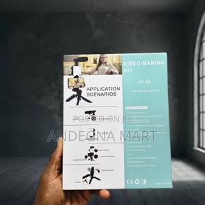 Enhance your mobile content creation with the AY-49 Vlogging Kit. This all-in-one starter kit includes an adjustable mini tripod, a noise-canceling microphone for clear audio, and a bright LED fill light to ensure your videos always look professional. Get yours today for just 2200, with delivery available to your location.