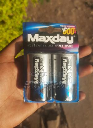 Maxday brand D size alkaline batteries.