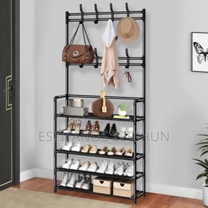New Simple Floor Clothes Rack የተለያየ አይነት አገልግሎት የሚሰጥ መደርደሪያ ለጫማ ፣ ለልብስ፣ ለቦርሳ፣ ለኮፍያ መጠቀም ምንችለው ባለ 5 ደረጃ የሆነ ፣የልብስ ማንጠልጠያ ያለው ከማይዝግ ብረት የተሰራ ለመገጣጠም እና ለማንቀሳቀስ ቀላል የሆነ Price : ሽፋን