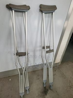 የብብት እና የክንድ ክራንች elbow Nd axillary crutches #axillary_crutches #elbow_crutches #almunium_crutchea #Free_and fast_delivery #stainless_crutches #crutches_in_Ethiopia #crutches_in_addis_ababa Axilla or underarm crutches: They should be positioned with 2-3 fingers of distance between the axilla and the axilla pad with the elbow flexed between 20-30 degrees.[1] The design includes an axilla bar, a handpiece and double uprights joined distally by a single leg. They are adjustable in height; both the overall height and handgrip height can be adjusted (adjustable approximately 48 to 60 inches / 122 to 153 cm).