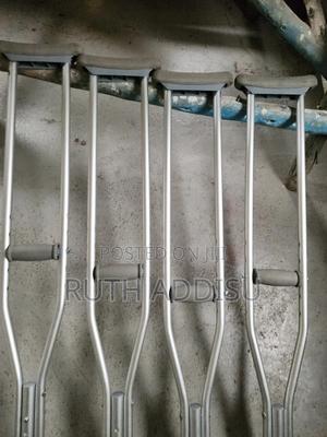 የብብት እና የክንድ ክራንች elbow Nd axillary crutches #axillary_crutches #elbow_crutches #almunium_crutchea #Free_and fast_delivery #stainless_crutches #crutches_in_Ethiopia #crutches_in_addis_ababa Axilla or underarm crutches: They should be positioned with 2-3 fingers of distance between the axilla and the axilla pad with the elbow flexed between 20-30 degrees.[1] The design includes an axilla bar, a handpiece and double uprights joined distally by a single leg. They are adjustable in height; both the overall height and handgrip height can be adjusted (adjustable approximately 48 to 60 inches / 122 to 153 cm).