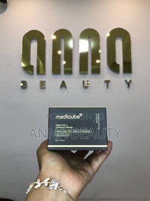 Medicube DEEP VITA C CAPSULE CREAM is a brightening moisturizer infused with 50% vitamin water, vitamin C derivatives, and 5% niacinamide. It targets dullness, uneven skin tone, and dark spots, delivering hydration and radiance. Encapsulated vitamins ensure freshness and potency for visibly clearer, more luminous skin with regular use.