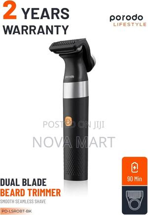 Porodo LifeStyle Rechargeable Dual- Blade Beard Trimmer 600mAh, IPX7 Whole-body Waterproof, 1 Adjustable Guide Comb Included, 90 Minutes Working Time - Black