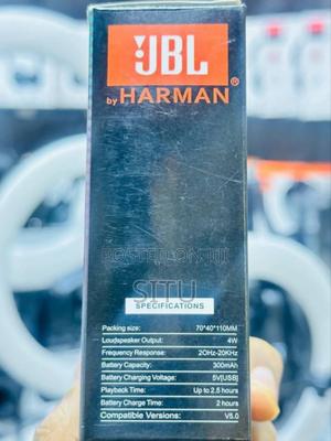 JBL MINI SPEAKER Loudspeaker Output: 4W Frequency Response: 20Hz-20KHz Battery Capacity: 300mAh Playback Time: Up to 2.5 hours Battery Charge Time: 2 hours Compatible Versions: V5.0
