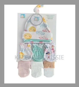 ቆንጆ ኳሊቲ 9pc ( 3 caps & 3 mitten & 3 pairs of socks ) 9ፍሬ (3ኮፍያ 3ካልሲ 3 ጓንት) size:0-6m