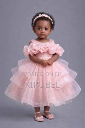 This dress features a soft layered puffy tulle skirt with gentle sparkle and a ruffled off-shoulder neckline, giving it an elegant and charming look. Designed to be comfortable for babies and toddlers while maintaining a premium finish.