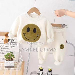 MK- 0557 Smile emoji 2 piece outfit Size: 1-6 years Color: White and gray