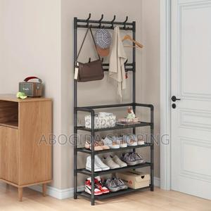 Multi Functional Shoe and Hat Rack ባለ ዘርፈ ብዙ ጥቅም ለጫማ፣ ለባርኔጣ፡ኮፍያ መሰል ዕቃዎች ማስቀመጫ የሚገጣጠም ከማይዝግ ብረት የተሰራ ባለ 5 ደረጃ 1.70ሜትር × 26cm × 80cm ስፋት አነስተኛ ቦታ የሚይዝ