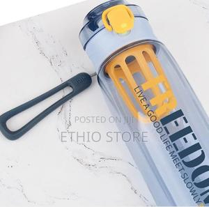 Freedom Live A Good Life" sports water bottle, which is made of plastic and has a blue tint. ዋጋ 1550
