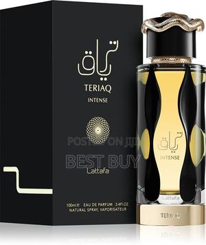 Teriaq Intense is a rich, spicy‐fruity fragrance that layers a bright saffron‐bergamot opening with a decadent plum‐liquor and cinnamon middle, before settling into a warm and resinous base of tonka, amber and benzoin.