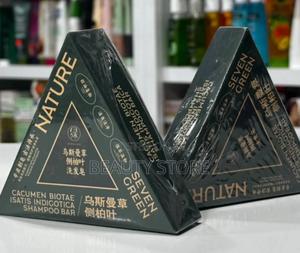 It is a solid shampoo bar designed in a unique triangle shape for easy grip.