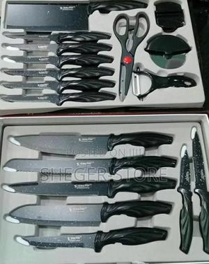 Zepter Quality Knife Set በጣም ስል ቢላዎች 18 የቢላ ስብስብ መከትከቻ፣ መቀስ፣ ካሮት መላጪያ፣ ፒዛ መቁረጪያ፣ ሞረድ እና ሌሎች የተለያዪ የቢላ አይነቶች የተካተተለት በግራናይት የተለበጡ ስለሆኑ ቶሎ አይደንዙም አይዝጉም