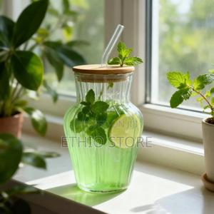 የሞይቶ መጠጫ ብርጭቆ ባንቦ ክዳን እና የራሱ ስትሮ ያለው በተለያዬ የዲዛይን አማራጭ