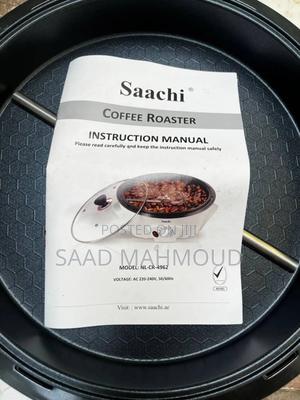 Saachi Coffee Roaster 800g 800-1000g home coffee roaster 1200W power, AC 220–240V, 50/60Hz Adjustable temperature control Multipurpose (coffee & popcorn) Die-cast roasting pan & stainless blade Cool-touch handles for safety