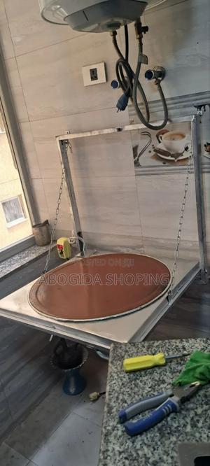 A modern wall-mounted ቆጣቢ የእንጀራ ምጣድ, ideal for small spaces
