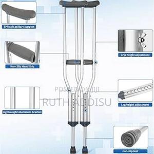 የብብት እና የክንድ ክራንች elbow Nd axillary crutches #axillary_crutches #elbow_crutches #almunium_crutchea #Free_and fast_delivery #stainless_crutches #crutches_in_Ethiopia #crutches_in_addis_ababa Axilla or underarm crutches: They should be positioned with 2-3 fingers of distance between the axilla and the axilla pad with the elbow flexed between 20-30 degrees.[1] The design includes an axilla bar, a handpiece and double uprights joined distally by a single leg. They are adjustable in height; both the overall height and handgrip height can be adjusted (adjustable approximately 48 to 60 inches / 122 to 153 cm).
