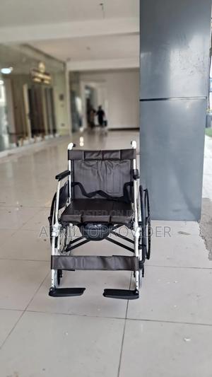 Standard commode wheelchair for elderly, post surgery patients and those with limited mobility. It is a manual wheelchair.