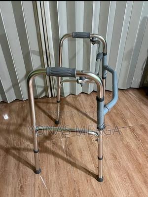 Double Bars Foldable Walking Aid, Adjustable Height, Lightweight Walker, Premium Grade Rubber Shoes