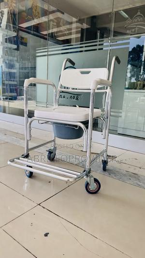 Standard commode wheelchair for elderly, post surgery patients and those with limited mobility. It is a manual wheelchair.