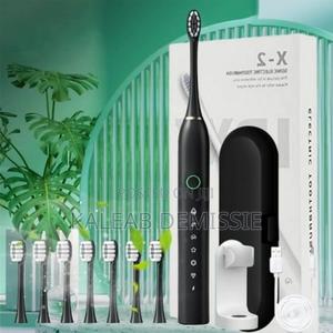 Sonic Electric Toothbrush rechargeable with 4 Soft Bristles Brush Heads waterproof suitable for male and female ideal for Gift በፓኬጁ ውስጥ የሚገኙ 1 የኤሌክትሪክ የጥርስ መቦረሻ (Handle) 4 የመቦረሻ ብሩሾች 1 የUSB ቻርጀር ኬብል ዋጋ፦