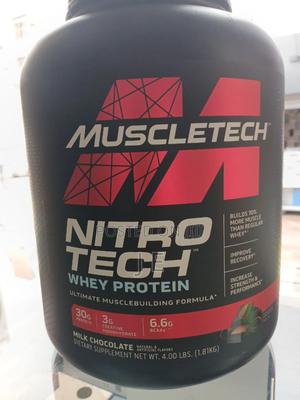 MuscleTech Nitro Tech is a whey protein powder designed for muscle building, strength, and faster recovery. It features a blend of whey protein peptides and isolate, providing 30 grams of protein per scoop, along with 6.8 grams of BCAAs and 3 grams of creatine. This combination is designed to help users build more muscle and strength than whey protein alone.