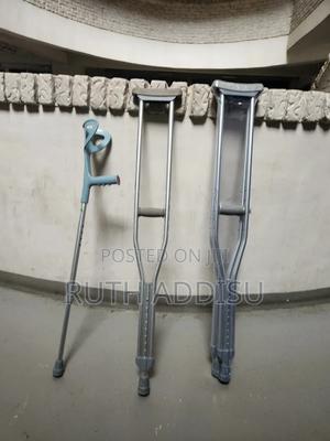የብብት እና የክንድ ክራንች elbow Nd axillary crutches #axillary_crutches #elbow_crutches #almunium_crutchea #Free_and fast_delivery #stainless_crutches #crutches_in_Ethiopia #crutches_in_addis_ababa Axilla or underarm crutches: They should be positioned with 2-3 fingers of distance between the axilla and the axilla pad with the elbow flexed between 20-30 degrees.[1] The design includes an axilla bar, a handpiece and double uprights joined distally by a single leg. They are adjustable in height; both the overall height and handgrip height can be adjusted (adjustable approximately 48 to 60 inches / 122 to 153 cm).