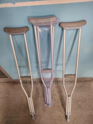 የብብት እና የክንድ ክራንች elbow Nd axillary crutches #axillary_crutches #elbow_crutches #almunium_crutchea #Free_and fast_delivery #stainless_crutches #crutches_in_Ethiopia #crutches_in_addis_ababa Axilla or underarm crutches: They should be positioned with 2-3 fingers of distance between the axilla and the axilla pad with the elbow flexed between 20-30 degrees.[1] The design includes an axilla bar, a handpiece and double uprights joined distally by a single leg. They are adjustable in height; both the overall height and handgrip height can be adjusted (adjustable approximately 48 to 60 inches / 122 to 153 cm).