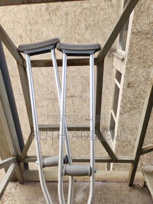 የብብት እና የክንድ ክራንች elbow Nd axillary crutches #axillary_crutches #elbow_crutches #almunium_crutchea #Free_and fast_delivery #stainless_crutches #crutches_in_Ethiopia #crutches_in_addis_ababa Axilla or underarm crutches: They should be positioned with 2-3 fingers of distance between the axilla and the axilla pad with the elbow flexed between 20-30 degrees.[1] The design includes an axilla bar, a handpiece and double uprights joined distally by a single leg. They are adjustable in height; both the overall height and handgrip height can be adjusted (adjustable approximately 48 to 60 inches / 122 to 153 cm).