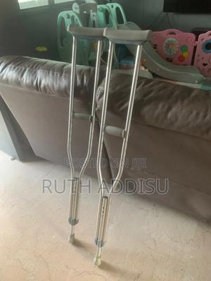የብብት እና የክንድ ክራንች elbow Nd axillary crutches #axillary_crutches #elbow_crutches #almunium_crutchea #Free_and fast_delivery #stainless_crutches #crutches_in_Ethiopia #crutches_in_addis_ababa Axilla or underarm crutches: They should be positioned with 2-3 fingers of distance between the axilla and the axilla pad with the elbow flexed between 20-30 degrees.[1] The design includes an axilla bar, a handpiece and double uprights joined distally by a single leg. They are adjustable in height; both the overall height and handgrip height can be adjusted (adjustable approximately 48 to 60 inches / 122 to 153 cm).