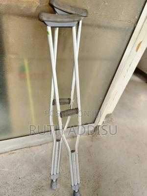 የብብት እና የክንድ ክራንች elbow Nd axillary crutches #axillary_crutches #elbow_crutches #almunium_crutchea #Free_and fast_delivery #stainless_crutches #crutches_in_Ethiopia #crutches_in_addis_ababa Axilla or underarm crutches: They should be positioned with 2-3 fingers of distance between the axilla and the axilla pad with the elbow flexed between 20-30 degrees.[1] The design includes an axilla bar, a handpiece and double uprights joined distally by a single leg. They are adjustable in height; both the overall height and handgrip height can be adjusted (adjustable approximately 48 to 60 inches / 122 to 153 cm).