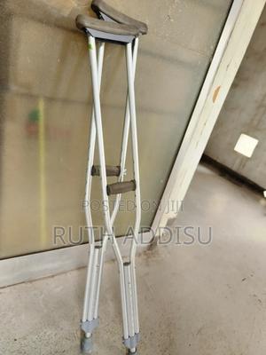 የብብት እና የክንድ ክራንች elbow Nd axillary crutches #axillary_crutches #elbow_crutches #almunium_crutchea #Free_and fast_delivery #stainless_crutches #crutches_in_Ethiopia #crutches_in_addis_ababa Axilla or underarm crutches: They should be positioned with 2-3 fingers of distance between the axilla and the axilla pad with the elbow flexed between 20-30 degrees.[1] The design includes an axilla bar, a handpiece and double uprights joined distally by a single leg. They are adjustable in height; both the overall height and handgrip height can be adjusted (adjustable approximately 48 to 60 inches / 122 to 153 cm).