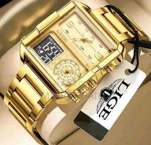 Men Sport Wrist Watch Gold Quartiz Steel Waterproof Dual Display Clock Watch for Men Relogio Masculino