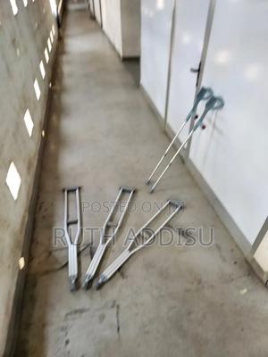 የብብት እና የክንድ ክራንች elbow Nd axillary crutches #axillary_crutches #elbow_crutches #almunium_crutchea #Free_and fast_delivery #stainless_crutches #crutches_in_Ethiopia #crutches_in_addis_ababa Axilla or underarm crutches: They should be positioned with 2-3 fingers of distance between the axilla and the axilla pad with the elbow flexed between 20-30 degrees.[1] The design includes an axilla bar, a handpiece and double uprights joined distally by a single leg. They are adjustable in height; both the overall height and handgrip height can be adjusted (adjustable approximately 48 to 60 inches / 122 to 153 cm).