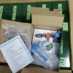 Medical oxygen regulator and humidifier bottle kit. These devices are used to regulate and deliver supplemental oxygen to patients who need it.