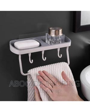 SOAP BOX RACK የሳሙና ማስቀመጫ ግድግዳ ላይ የሚለጠፍ የራሱ መለጠፊያ ስላለው ግድግዳ መብሳት አያስፈልግም ሁለት ሳሙናዎችን እና አንድ ፎጣ የሚይዝ