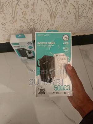 “SOVO P5 Power Bank – Ultra-large 50000mAh capacity , 4 USB ports , 5V/2A fast charging , perfect for all your devices , portable and reliable .”