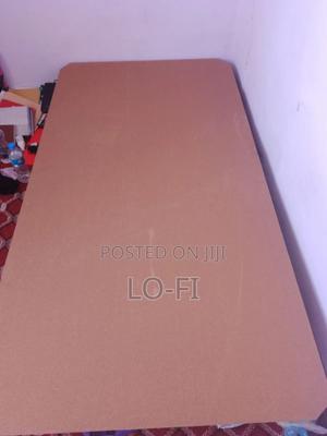 A metal bed frame with wooden support for your bed.