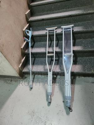 የብብት እና የክንድ ክራንች elbow Nd axillary crutches #axillary_crutches #elbow_crutches #almunium_crutchea #Free_and fast_delivery #stainless_crutches #crutches_in_Ethiopia #crutches_in_addis_ababa Axilla or underarm crutches: They should be positioned with 2-3 fingers of distance between the axilla and the axilla pad with the elbow flexed between 20-30 degrees.[1] The design includes an axilla bar, a handpiece and double uprights joined distally by a single leg. They are adjustable in height; both the overall height and handgrip height can be adjusted (adjustable approximately 48 to 60 inches / 122 to 153 cm).