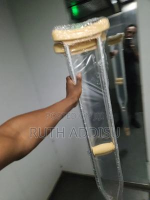 የብብት እና የክንድ ክራንች elbow Nd axillary crutches #axillary_crutches #elbow_crutches #almunium_crutchea #Free_and fast_delivery #stainless_crutches #crutches_in_Ethiopia #crutches_in_addis_ababa Axilla or underarm crutches: They should be positioned with 2-3 fingers of distance between the axilla and the axilla pad with the elbow flexed between 20-30 degrees.[1] The design includes an axilla bar, a handpiece and double uprights joined distally by a single leg. They are adjustable in height; both the overall height and handgrip height can be adjusted (adjustable approximately 48 to 60 inches / 122 to 153 cm).