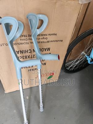 የብብት እና የክንድ ክራንች elbow Nd axillary crutches #axillary_crutches #elbow_crutches #almunium_crutchea #Free_and fast_delivery #stainless_crutches #crutches_in_Ethiopia #crutches_in_addis_ababa Axilla or underarm crutches: They should be positioned with 2-3 fingers of distance between the axilla and the axilla pad with the elbow flexed between 20-30 degrees.[1] The design includes an axilla bar, a handpiece and double uprights joined distally by a single leg. They are adjustable in height; both the overall height and handgrip height can be adjusted (adjustable approximately 48 to 60 inches / 122 to 153 cm).