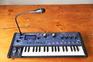 The Novation MiniNova is a 37-key compact synthesizer featuring a powerful sound engine, 18-note polyphony, and a 12-band vocoder with a gooseneck microphone. It is designed for portability and live performance.