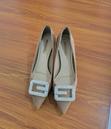 Slightly used elegant beige pointed-toe heels designed with a comfortable padded insole and a stable...
