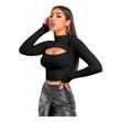 Shein Relaxiva Mock Neck Cut-Out Rib-Knit Slim Crop Tee